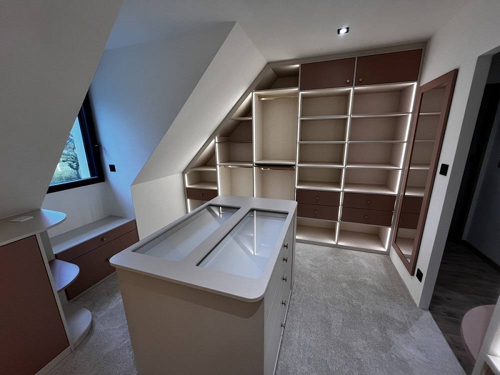 Alliez esthétisme, confort et optimisation maximale grâce à un dressing unique, réalisé selon vos envies et vos besoins. Transformez votre sous-pente en un espace d’exception.