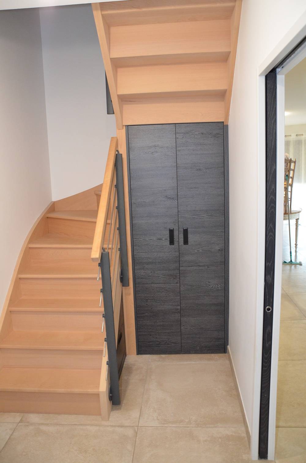 un tiroir à chaussures !!!! vous allez gagner de la place je suis en mesure de réaliser votre projet c'est astucieux de pouvoir ranger les chaussures dans un tiroir , même poser des portes battantes pour optimiser l'espace et pouvoir créer une penderie pour accueillir vos proches façades noir à l'identique des portes existantes des clients, poignées encastrées la société DLDP est a votre écoute pour mettre en œuvre vos idées cette réalisation ce trouve à saint pierre des fleurs 27190 entre le Neubourg et elbeuf dans le département de l'Eure un projet ! je suis a votre écoute pour vous faire un devis