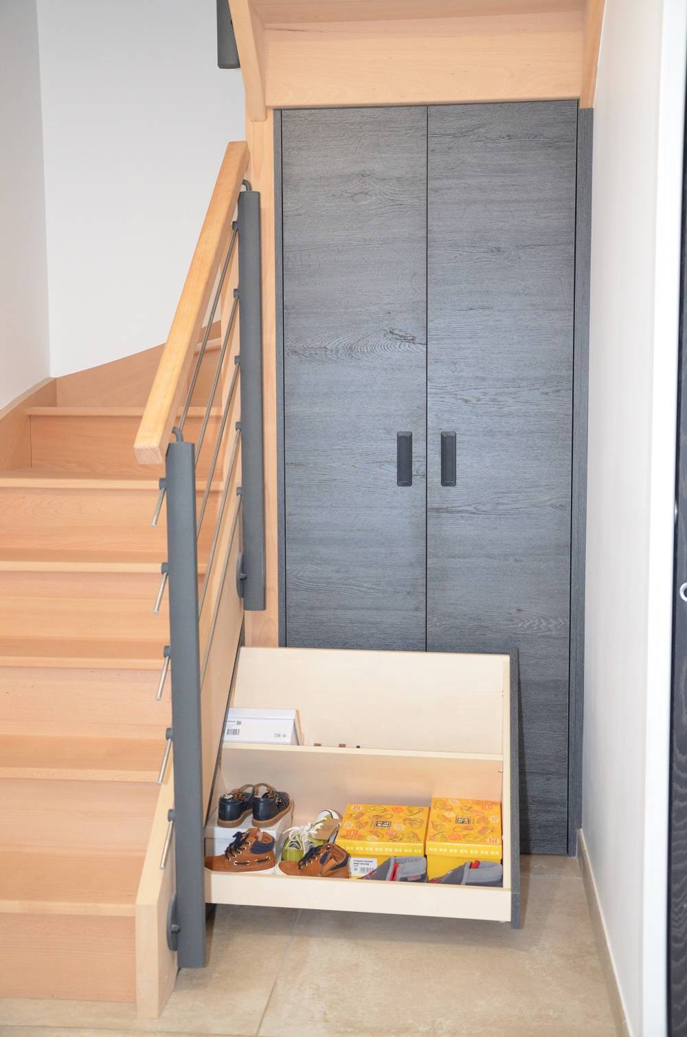 Tiroir à chaussures sur mesure en agencement dans appartement à Rouen
